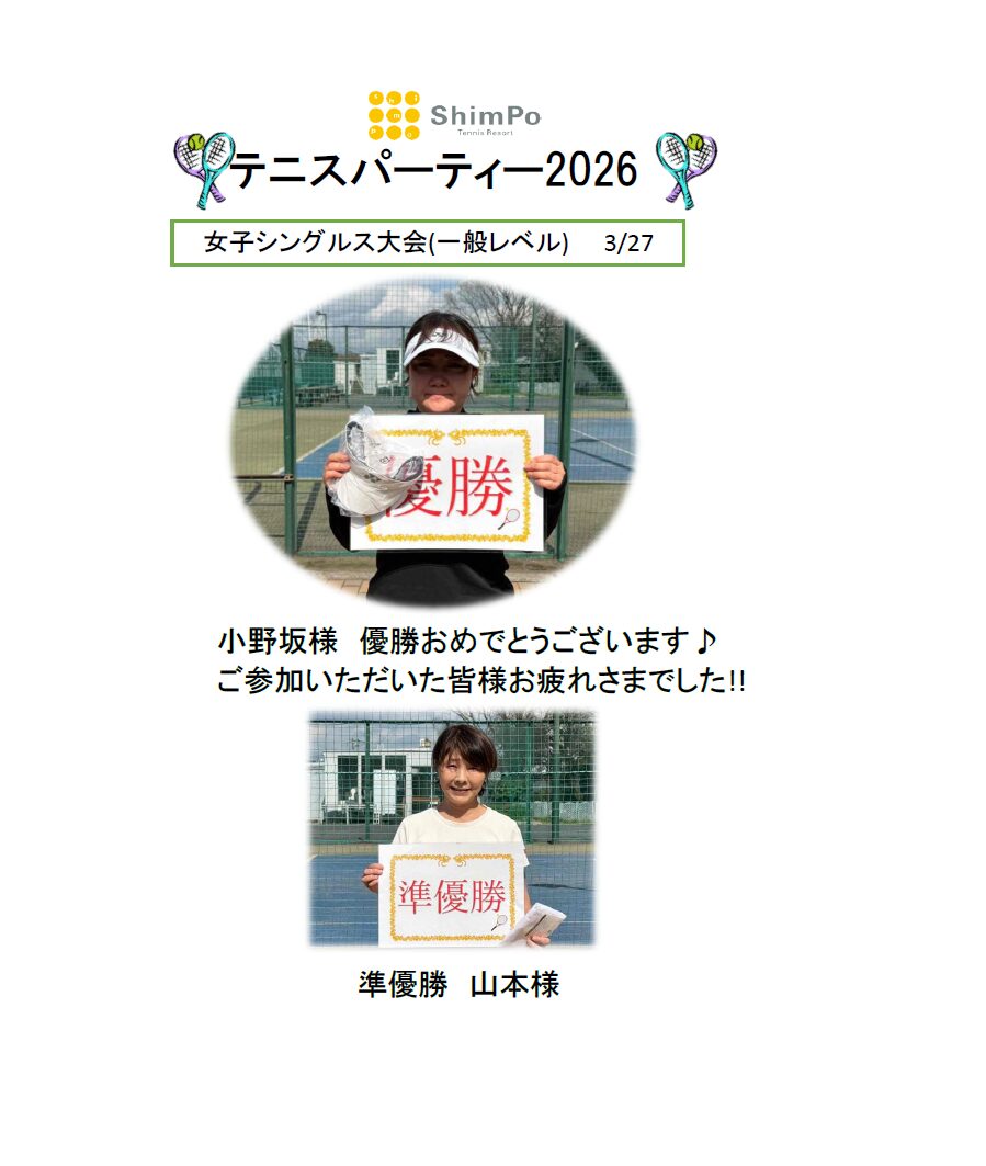 2026 月例女子シングルス一般レベル3月大会