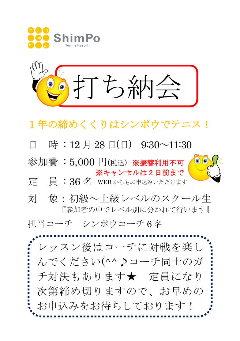 12/28(日)打ち納会 申し込み募集中♪