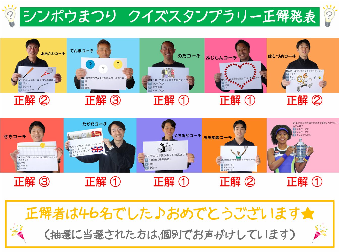 🎾シンポウテニスまつり🎾クイズスタンプラリー正解発表!