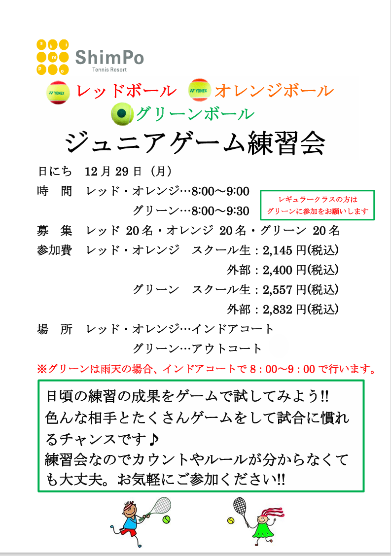 12月29日(月)ジュニアゲーム練習会のお知らせ